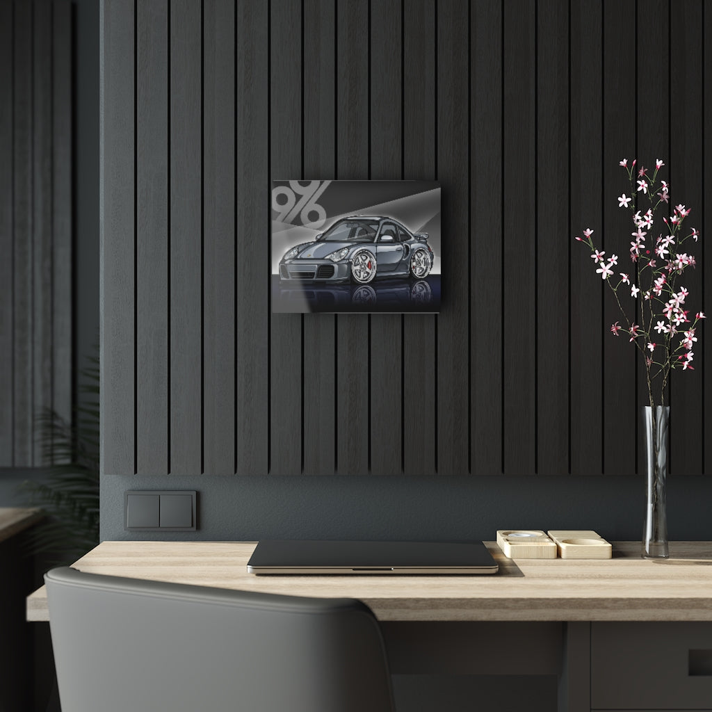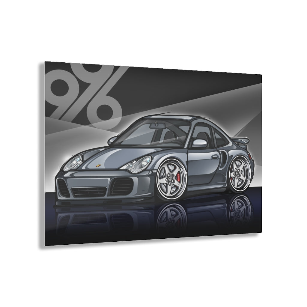 Our CHIBI Style Porsche 996 Turbo is printed on a glass surface, these acrylic photo prints never fail to dazzle. Your images are second-surface printed directly on a 1/4" acrylic panel for a stunning result. Each acrylic print comes ready to hang and floats 1.5" off the wall.