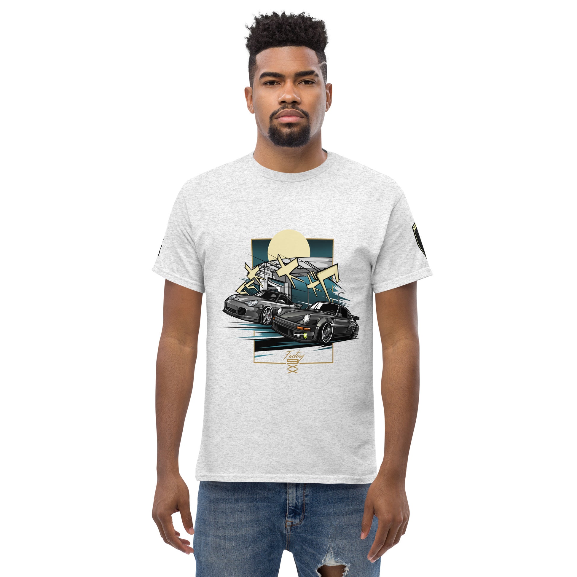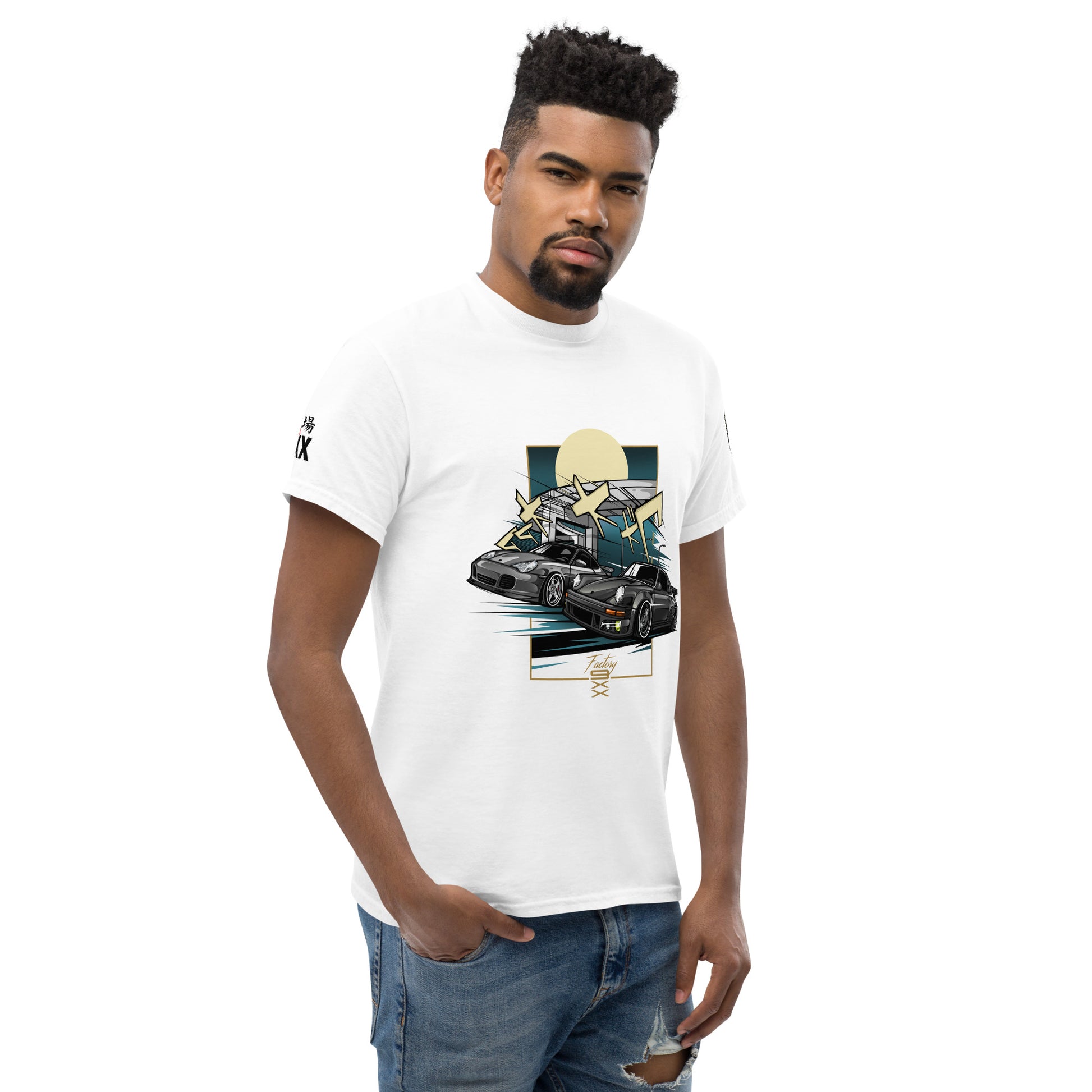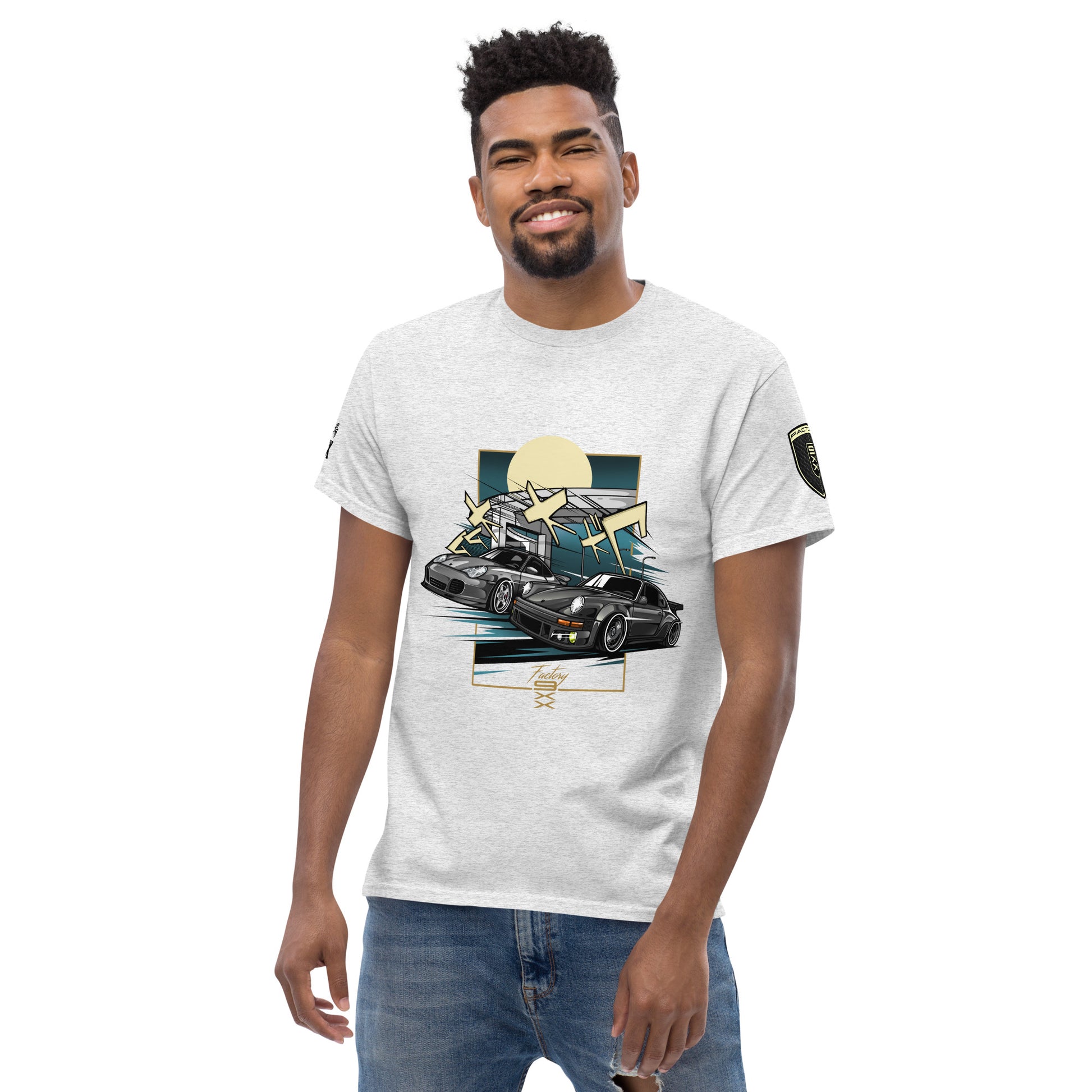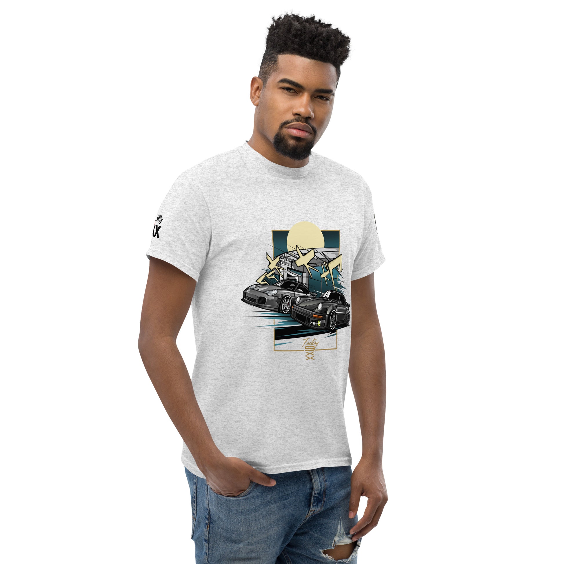 Our Porsche Wangan Style t-shirt is a must for any Porsche fanatic, especially if you are a fan Wangan Midnight Club. Our 996 Turbo and 930 ripping down the Wangan just make you wan to go out and drive! The 100% cotton men's classic tee will help you land a more structured look. It sits nicely, maintains sharp lines around the edges, and goes perfectly with layered streetwear outfits. Plus, it's extra trendy now