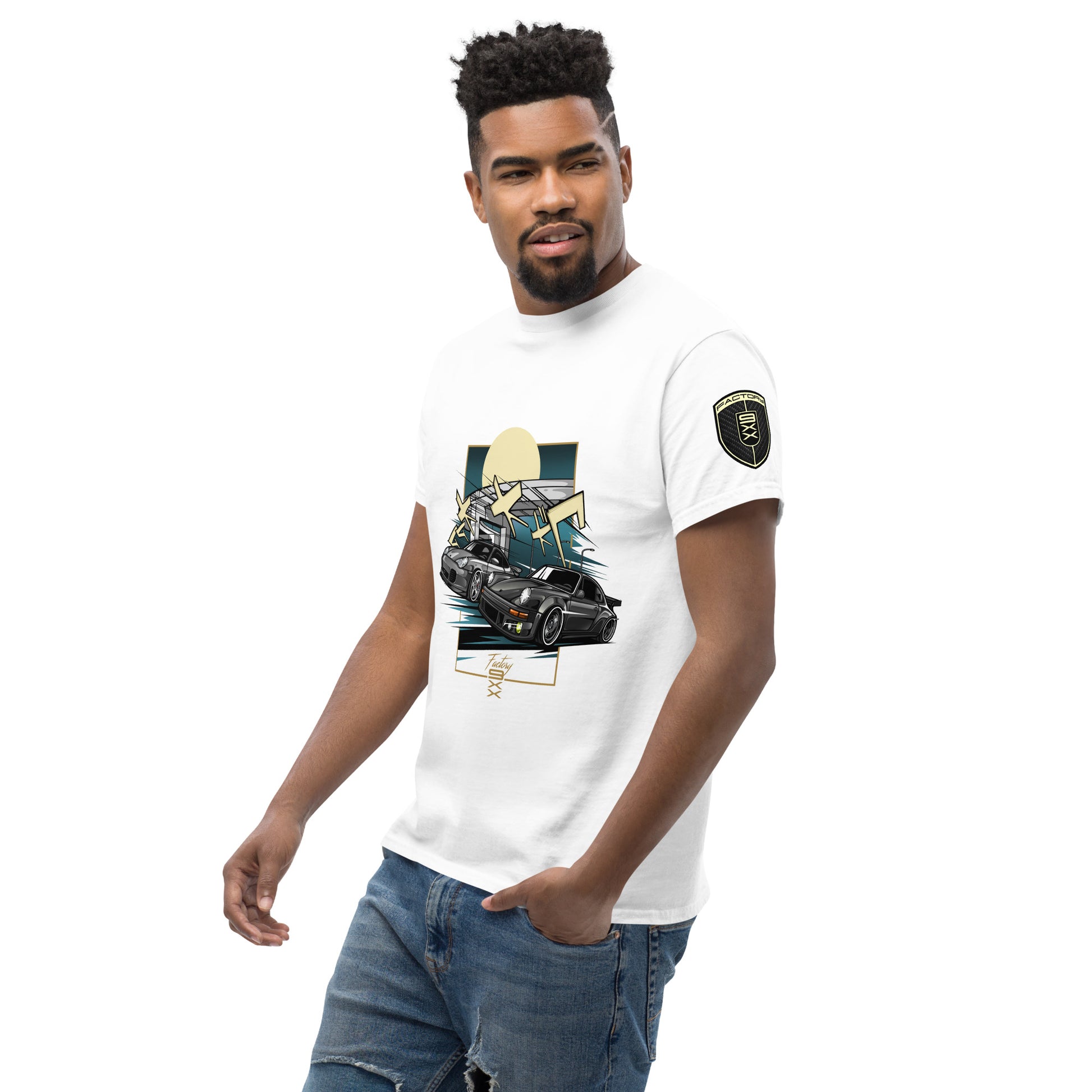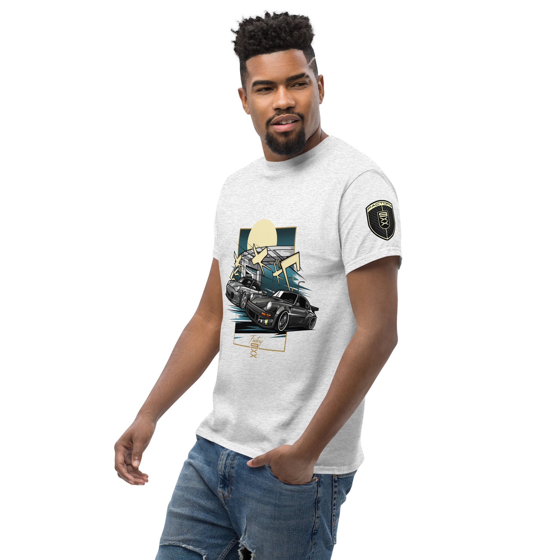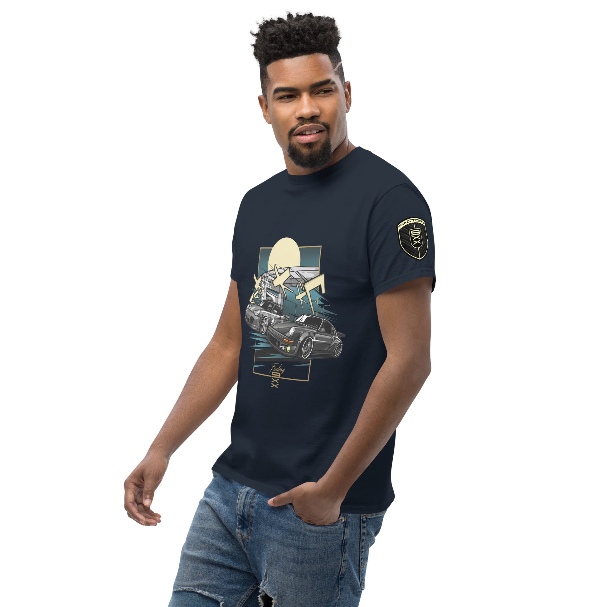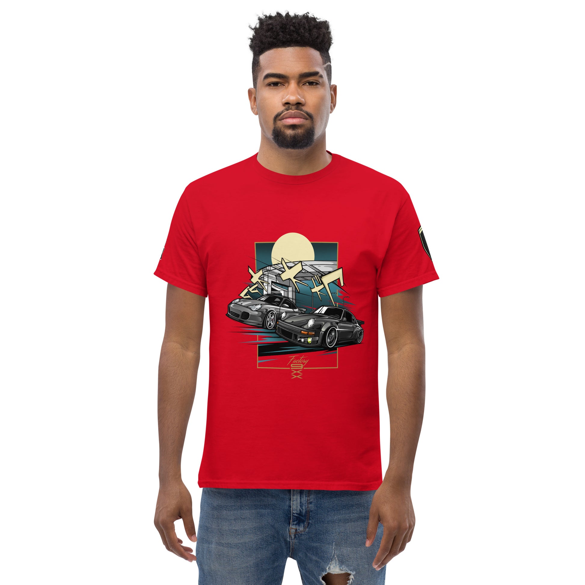 Our Porsche Wangan Style t-shirt is a must for any Porsche fanatic, especially if you are a fan Wangan Midnight Club. Our 996 Turbo and 930 ripping down the Wangan just make you wan to go out and drive! The 100% cotton men's classic tee will help you land a more structured look. It sits nicely, maintains sharp lines around the edges, and goes perfectly with layered streetwear outfits. Plus, it's extra trendy now
