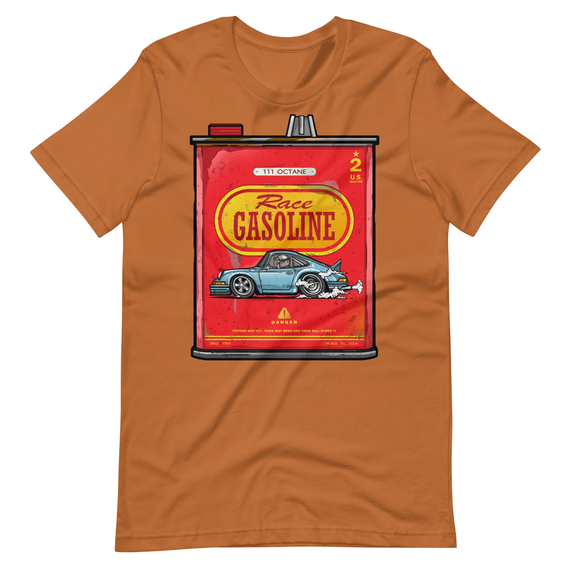 Show off your love for vintage Porsche racing with our race gas can themed t-shirt, inspired by classic Stan cans. Made from high-quality materials, this t-shirt is perfect for any Porsche enthusiast.